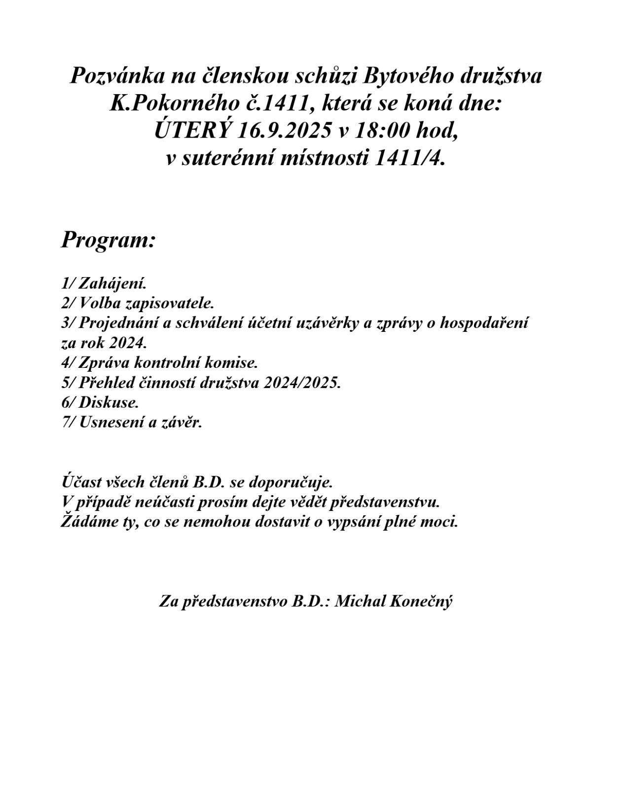 Pozvánka na členskou schůzi